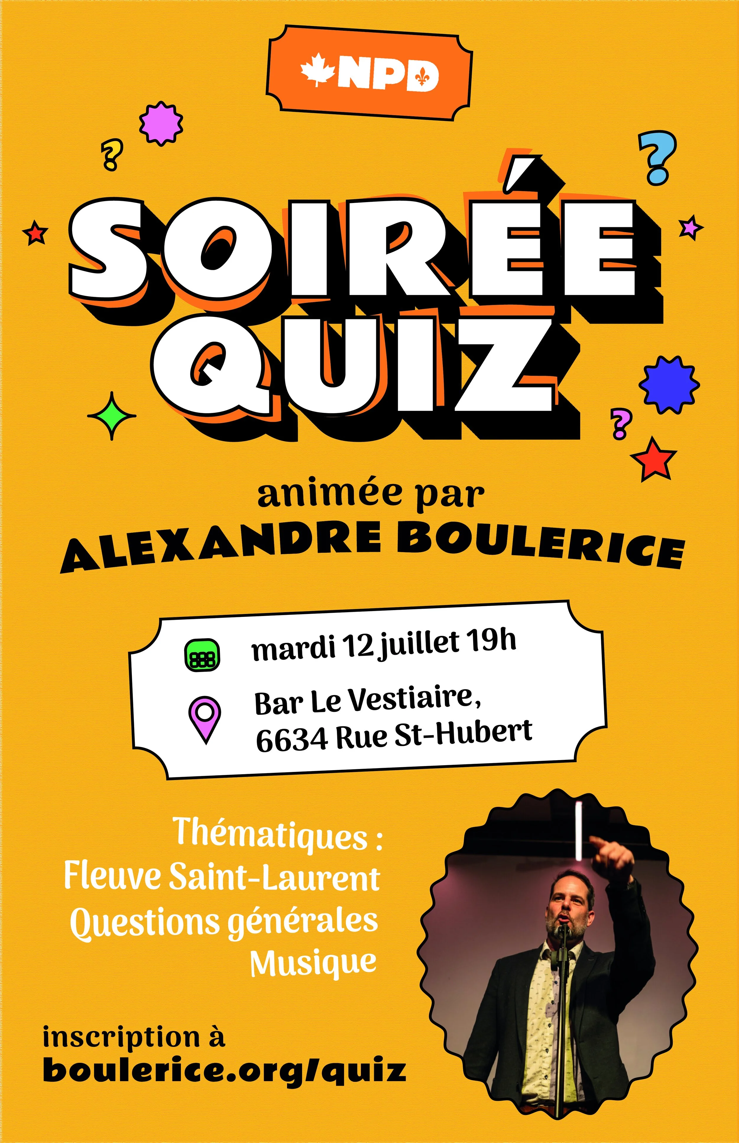 Mardi 12 juillet 2022 19h Bar Le Vestiaire, 6634 rue St-Hubert Formulaire d’inscription Nom * Prénom Nom de famille Courriel * Téléphone * (###) ### #### Code postal * Quel malheur ! Les places étant limitées, pouvez-vous indiquer le nombre de joueurs·euses dans votre équipe ? Je suis seul 2 joueurs 3 ou 4 joueurs 5 ou 6 joueurs Vous êtes bel et bien inscrit·es. À mardi !